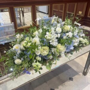 Example of Brides Bouquet and Long Low Table Arrangement